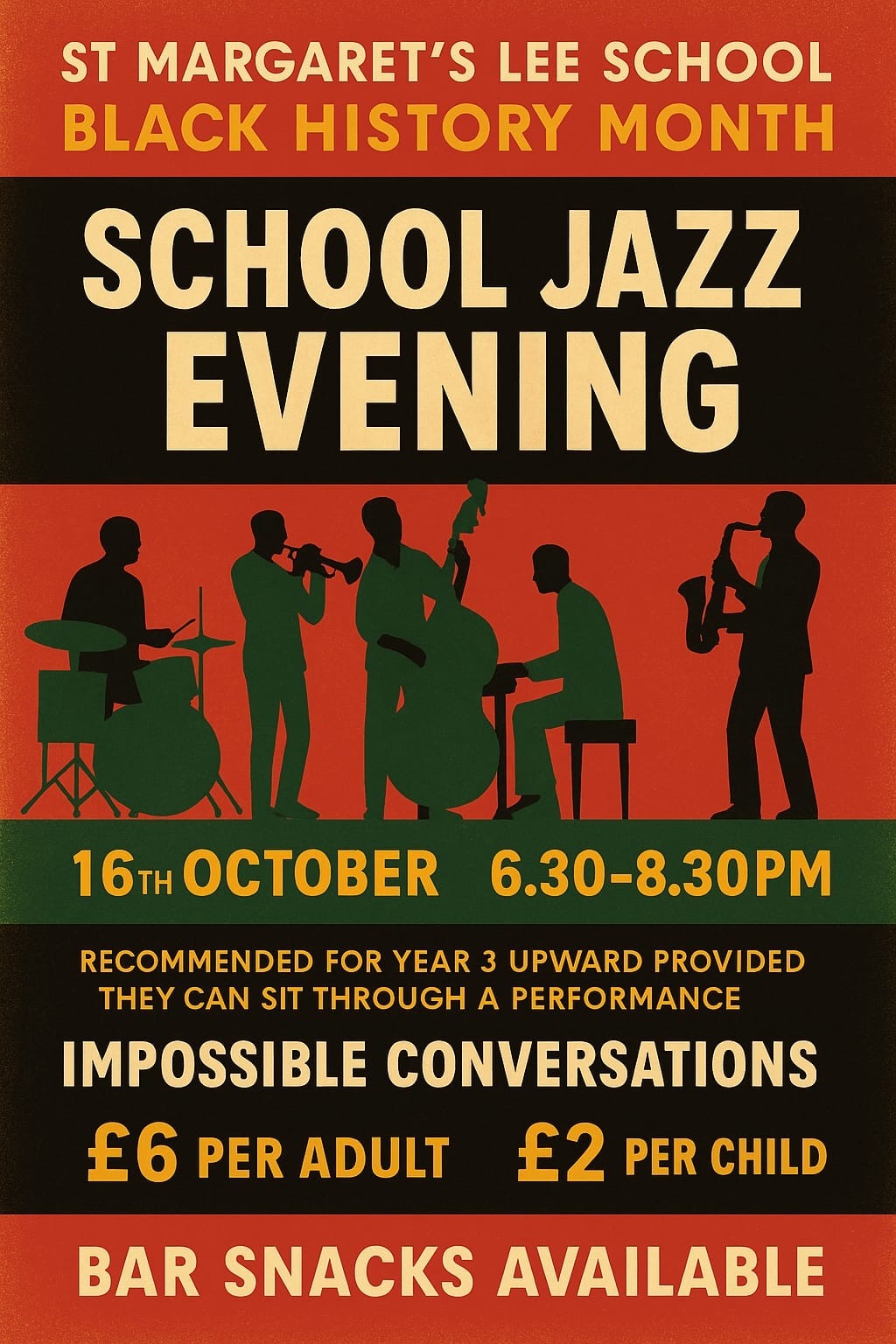 Join us for a SML first! To celebrate Black History month we will be welcoming Impossible Conversations - a fantastic jazz band who have played jazz venues accross the U.K.