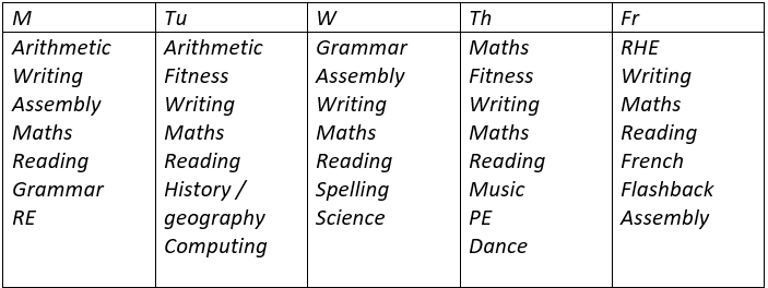 We also do maths investigations, which are often open-ended and a good challenge for our more confident mathematicians. This is the coverage timetable for the year with White Rose: